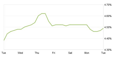 The 30-year fixed mortgage rate steadily rose early last week, peaking at 4.62 percent on Thursday before dropping near the current rate on Friday.